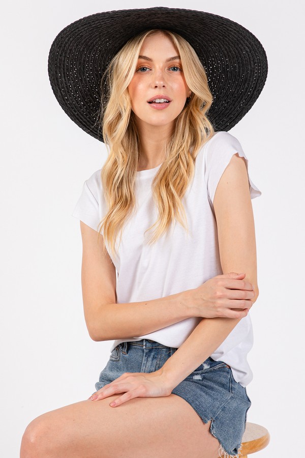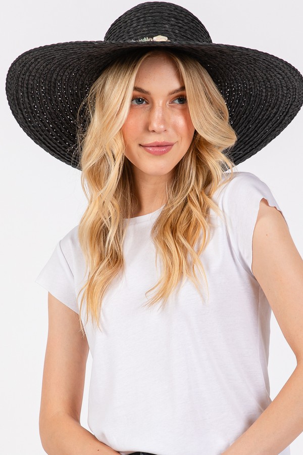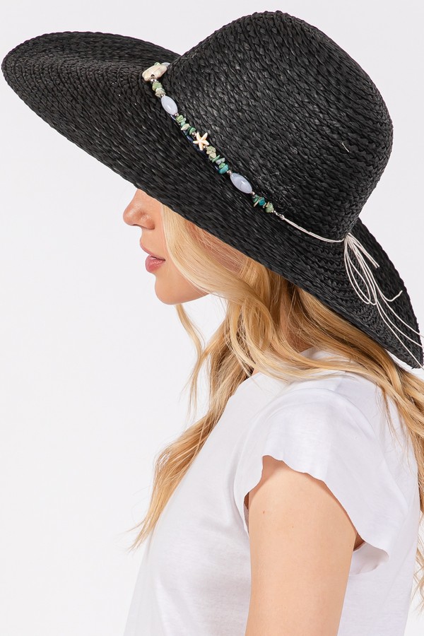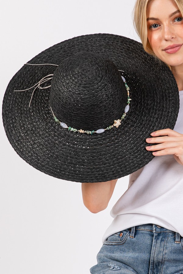 - * WIDE BRIM FLOPPY SUN HAT WITH TURQUOISE STONE AND STARFISH BAND.