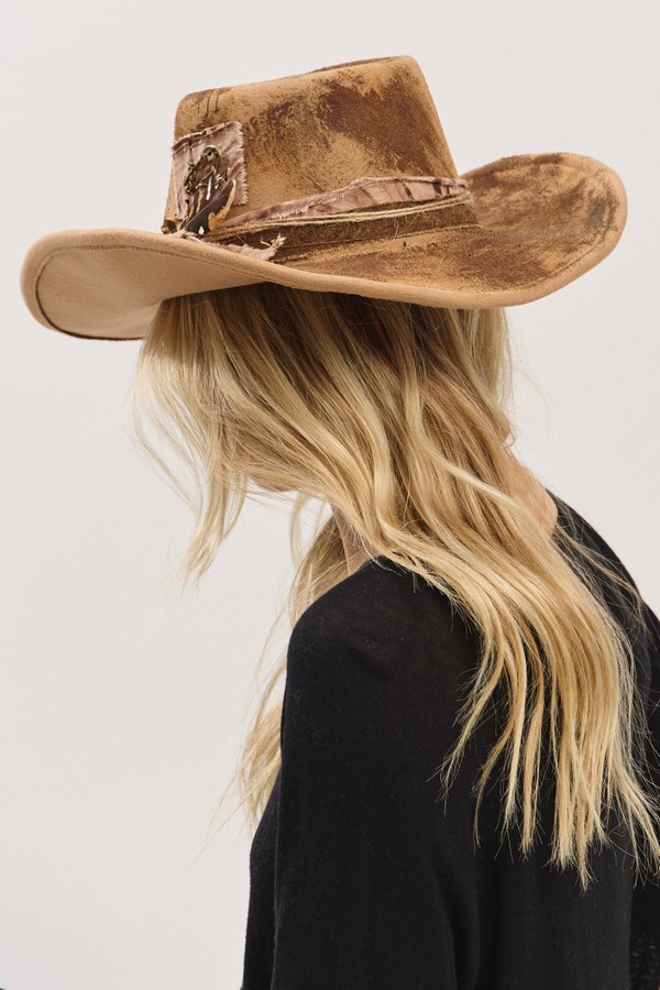 - * This is the Vintage Versatile Shapeable Cowgirl & Fedora Hat With Feather & Distressed Fabric Band from H&D Accessories. It boasts a classic design that can be shaped to suit different styles, making it highly adaptable. The addition of a feather and a distressed fabric band gives it a unique, retro charm. This hat is perfect for adding a touch of vintage flair to your outfit. Whether you're heading to a country - themed music festival, going on a casual weekend picnic, or simply want to elevate your everyday look with a stylish and timeless accessory, this hat will complement your ensemble beautifully and help you stand out with its distinctive and nostalgic design.