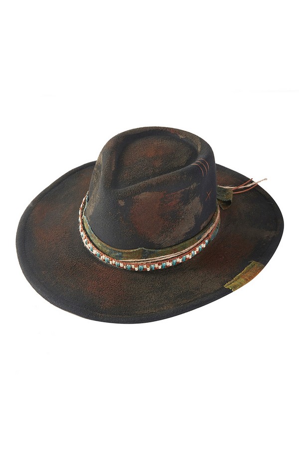 - * Vintage Versatile Shapeable Cowgirl & Fedora Hat With Distressed Fabric Band