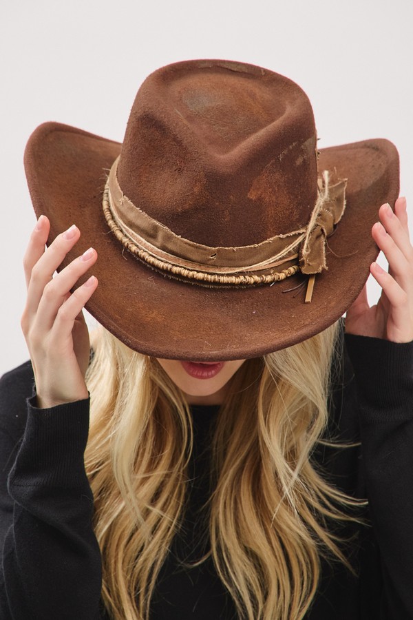 - * This is the Vintage Versatile Shapeable Cowgirl & Fedora Hat With Distressed Fabric Band from H&D Accessories. It features a classic design that can be shaped to fit different styles, making it highly adaptable. The distressed fabric band adds a touch of vintage charm and uniqueness. This hat is perfect for adding a stylish element to your outfit. Whether you're heading to a country - themed event, going on a casual outdoor adventure, or simply want to elevate your everyday look with a timeless and fashionable accessory, this hat will complement your ensemble beautifully and help you stand out with its distinctive and versatile design.
