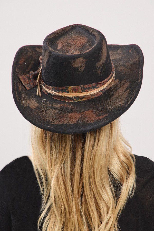 - * This is a Vintage Versatile Shapeable Cowgirl & Fedora Hat With Feather & Distressed Fabric Band from H&D Accessories. It has a decorative feather and a textured fabric band, adding a unique vintage charm. You can shape it to fit your desired style. Perfect for adding a retro touch to your outfits, it's suitable for casual outings, festivals, or when you want to elevate your daily look.