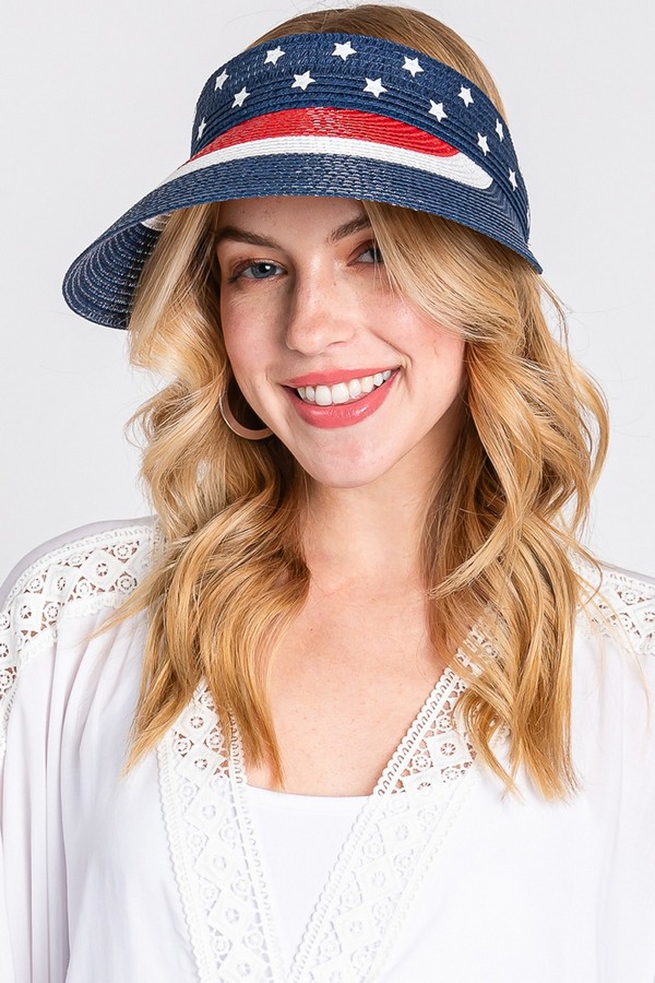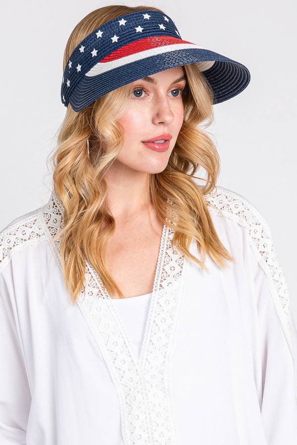 • * AMERICAN FLAG ROLL UP SUN VISOR WITH ADJUSTABLE ELASTIC BAND