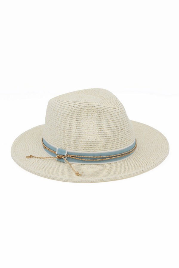 - * Straw Fedora Hat With Contrast Ribbon And Braided Cord Detail