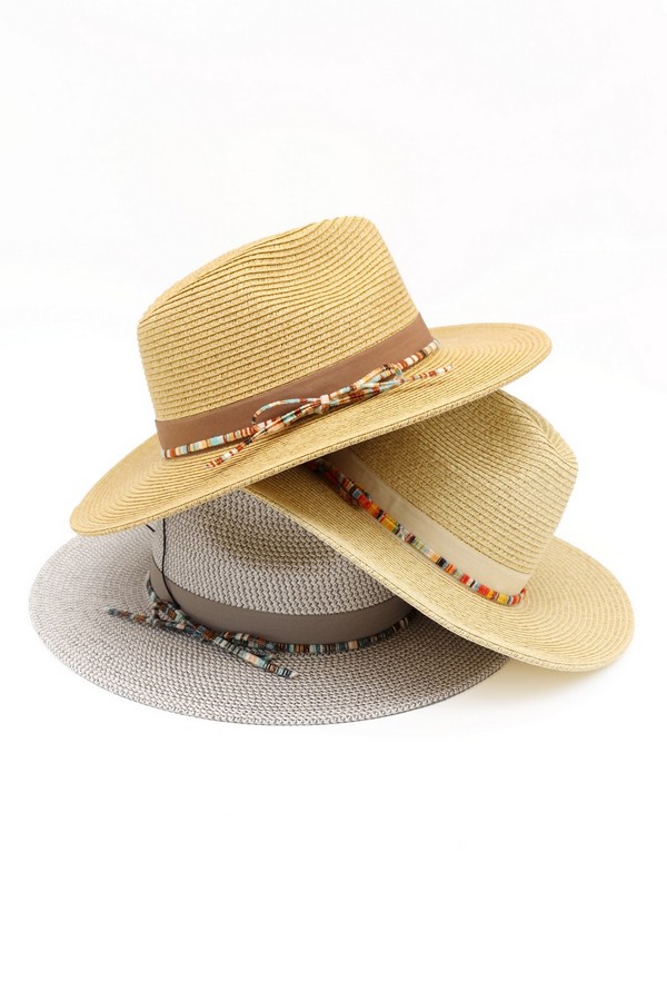 - * This is the Summer Straw Fedora Hat With Woven Multicolor Trim from H&D Accessories, a finely textured straw hat enhanced by a smooth band accented with a woven multicolor trim, which ties into a decorative bow that adds a playful, detailed touch. It’s perfect for a day at an outdoor farmers’ market—you can pair it with a casual outfit while staying shaded from the sun, with the woven trim bringing a lively, summery flair to your look. It also works well for a beachside walk, merging its classic fedora shape with the vibrant trim details for a stylish, relaxed accessory that complements warm-weather activities.