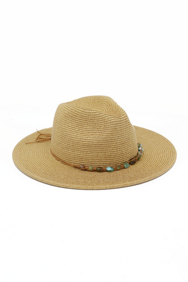 - * Straw Fedora Hat With Turquoise Stone Band