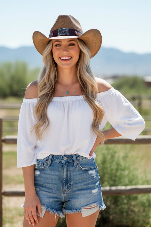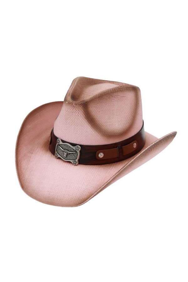 - * This Vintage Straw Cowboy Hat With Antiqued Longhorn Steer Concho from H&D Accessories is crafted from lightweight, breathable straw, detailed with a smooth leather band and an antiqued longhorn steer concho for an authentic Western-inspired finish. Its wide, curved brim offers dependable sun protection, making it a stylish and practical choice for country music festivals, trail rides, or casual summer outings.