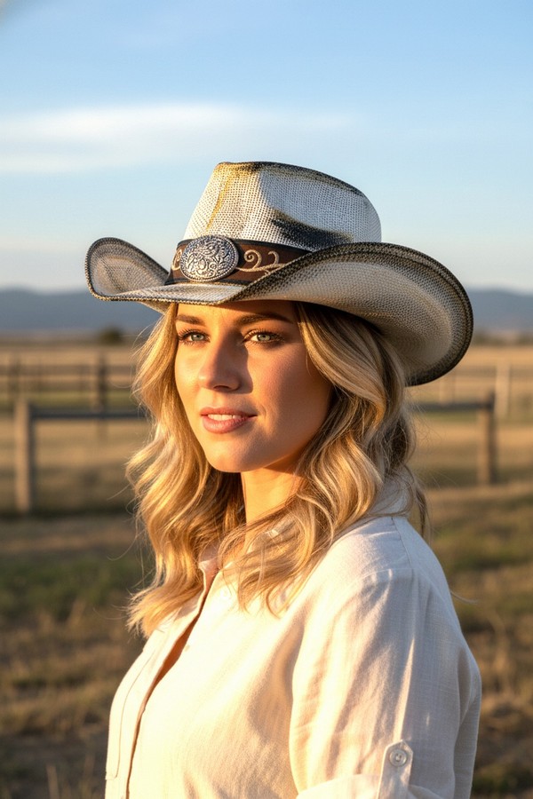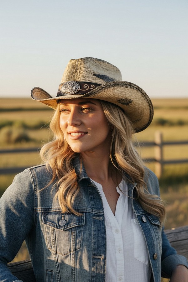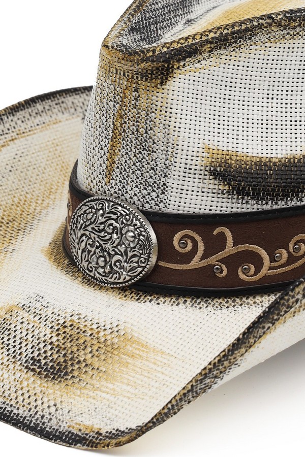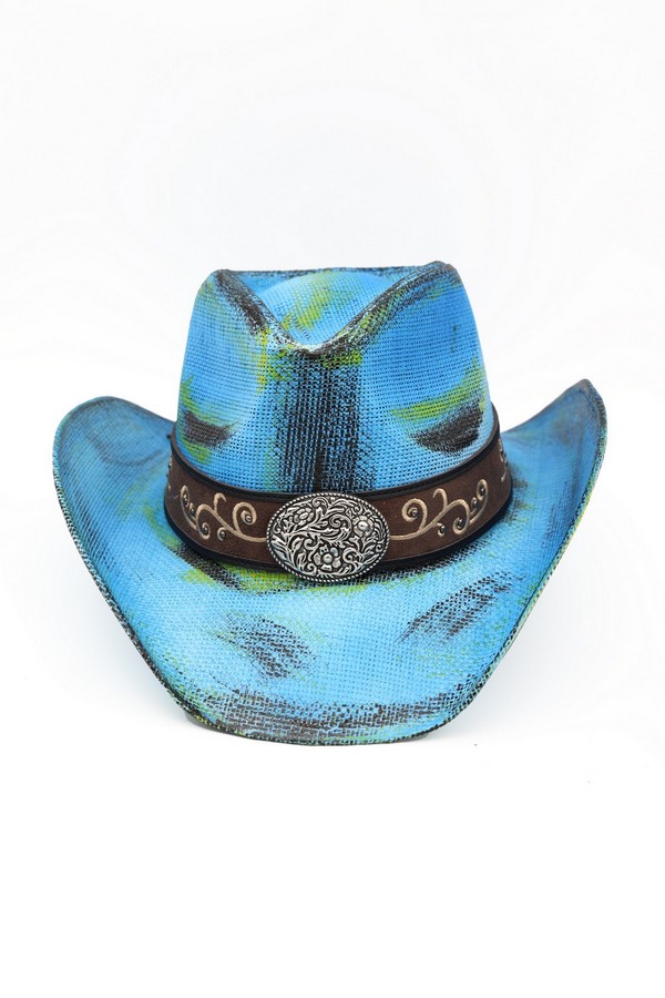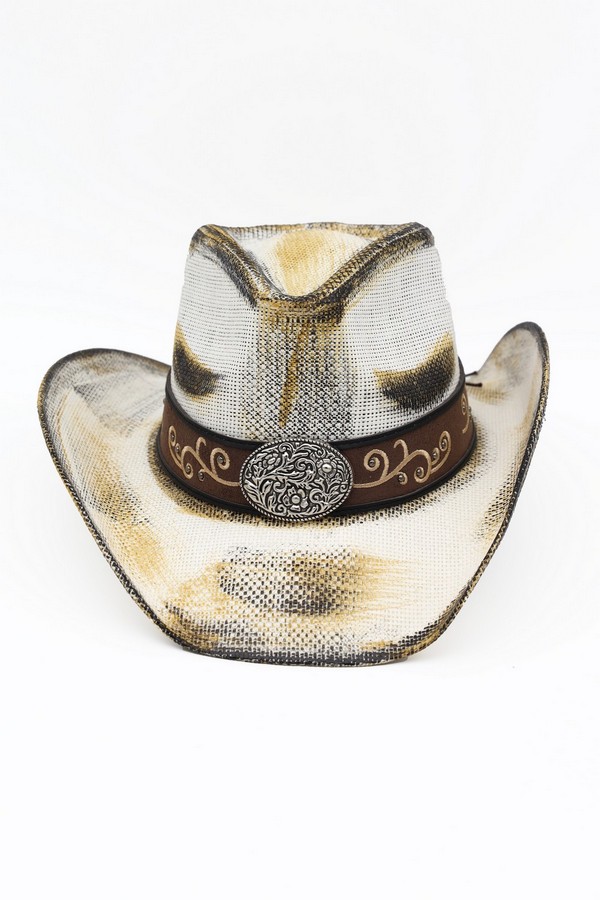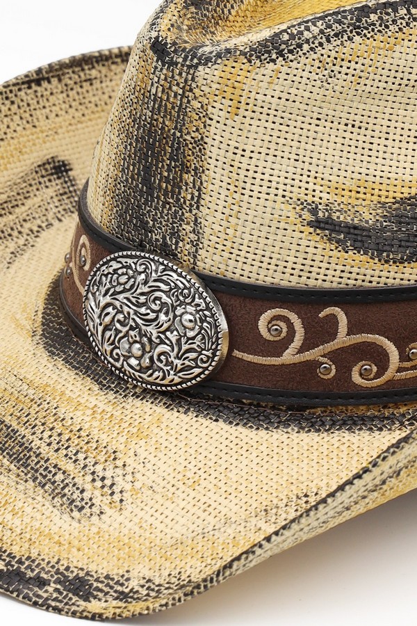 - * This is the Antique Wash Straw Cowboy Hat With Ornate Oval Buckle Faux Leather Band from H&D Accessories, a textured antique-washed straw hat adorned with a faux leather band featuring an intricate oval buckle, paired with curved decorative patterns along the strap. It’s perfect for a vintage western-themed outing—you can wear it while browsing a flea market or attending a casual outdoor art fair, with the ornate buckle and detailed band bringing a timeless, rustic flair to your outfit. It also works well for a daytime picnic in a park, merging its relaxed antique-wash silhouette with the elaborate decorative elements for a stylish, sun-protective accessory that fits laid-back weekend moments.