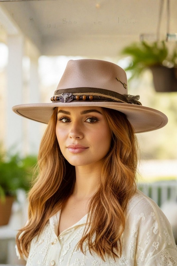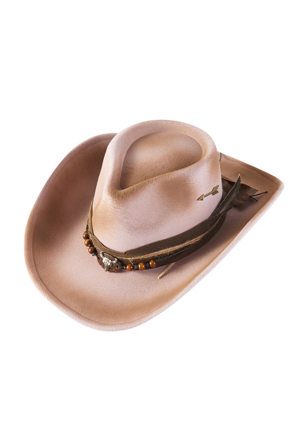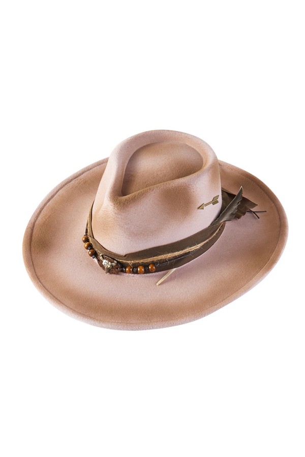 - * This is a Vintage Versatile Shapeable Cowgirl & Fedora Hat With Arrow, Feather & Distressed Fabric Band from H&D Accessories. It boasts a unique design that can be shaped into a cowgirl hat or a fedora, offering remarkable versatility. Adorned with an arrow detail, a feather, and a distressed fabric band along with beaded and decorative elements, it exudes a strong vintage charm. You can wear it when visiting a western-style vineyard to showcase a chic cowboy look, or pair it with a bohemian skirt for a fashionable, retro appearance when going to a countryside art retreat.