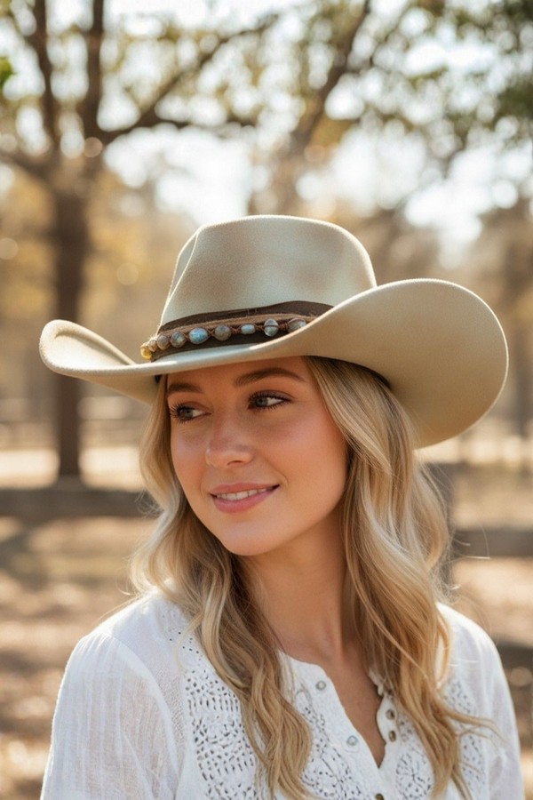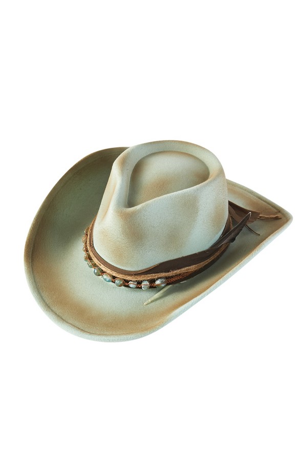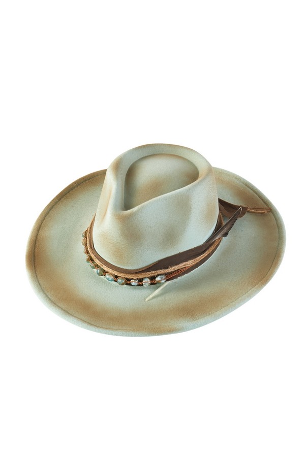 - * This is a Vintage Versatile Shapeable Cowgirl & Fedora Hat With Beaded, Feather & Distressed Fabric Band from H&D Accessories. It has a unique structure that can be shaped into a cowgirl hat or a fedora, ensuring exceptional versatility. Decorated with beaded details, a feather, and a distressed fabric band, it emits a strong vintage aura. You can wear it when going on a desert exploration to embrace a rugged, retro vibe, or pair it with a bohemian-style top for a fashionable, classic look while attending a folk art festival.