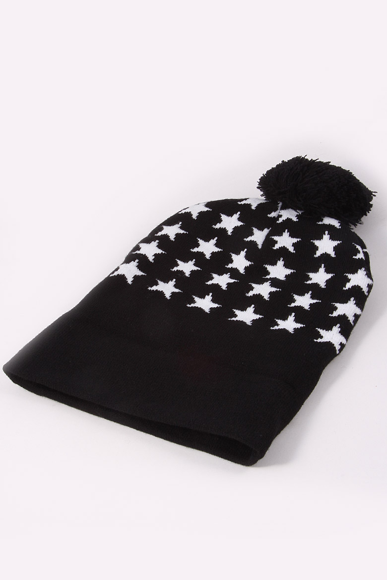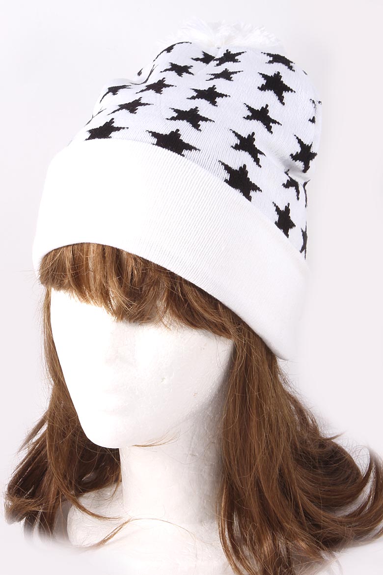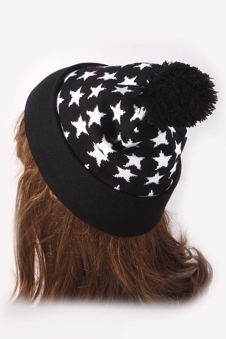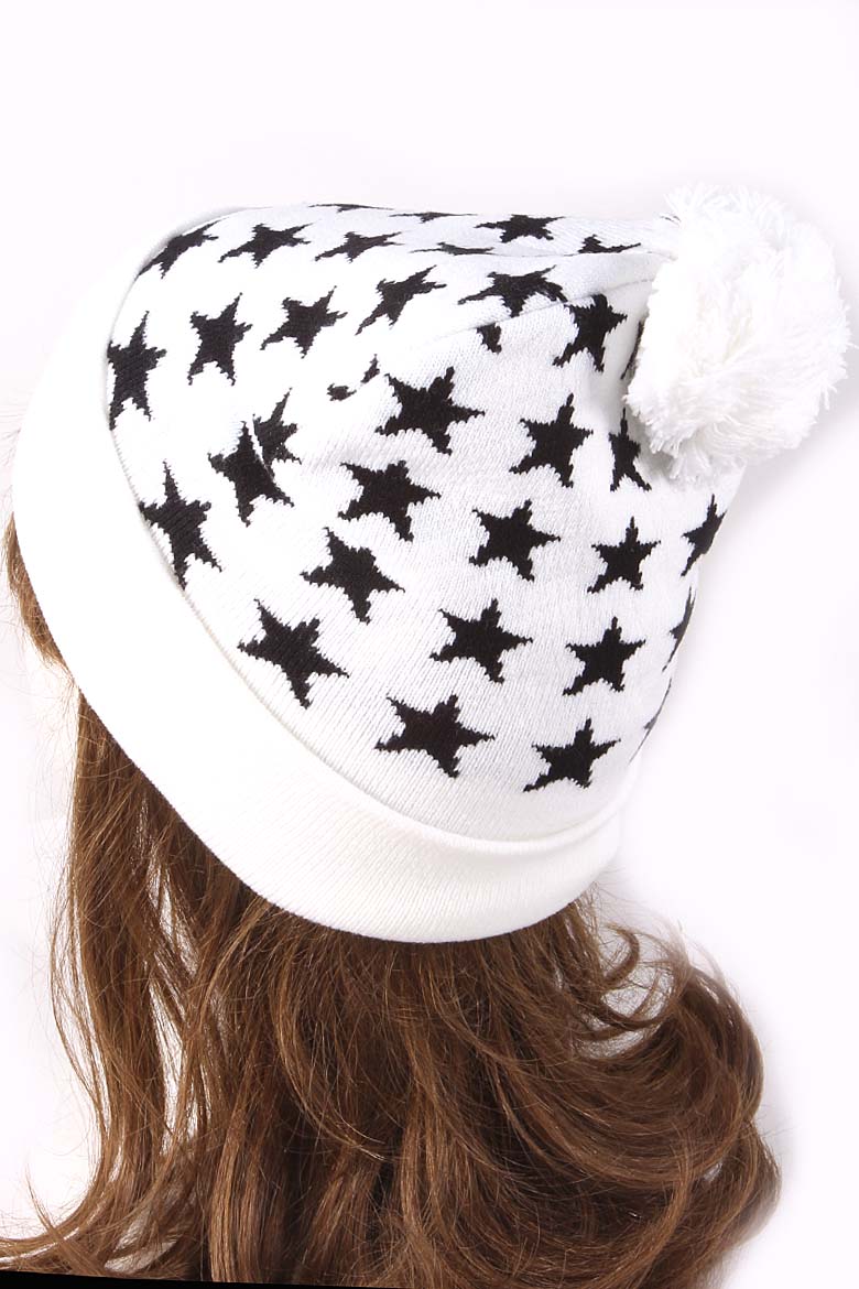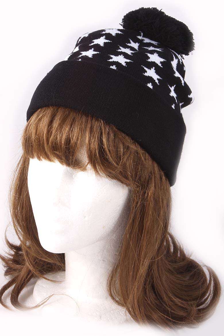 • * Star Lined Fur Ball Beanie 4IDAHAT5 * 18 x 8" approx.