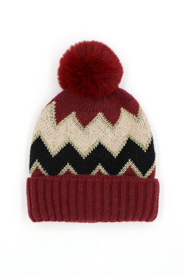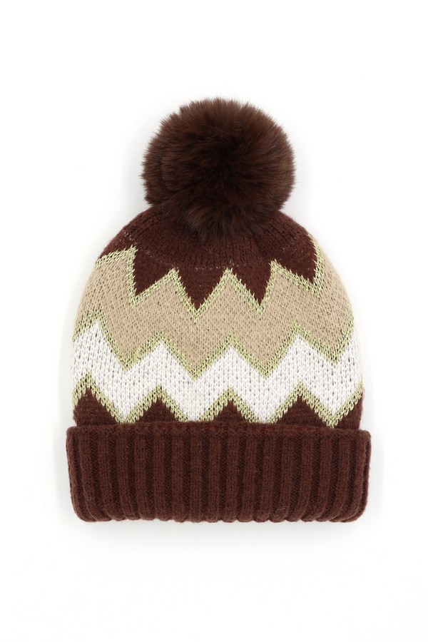- * Chevron Pompom Fuzzy Fleece Beanie
