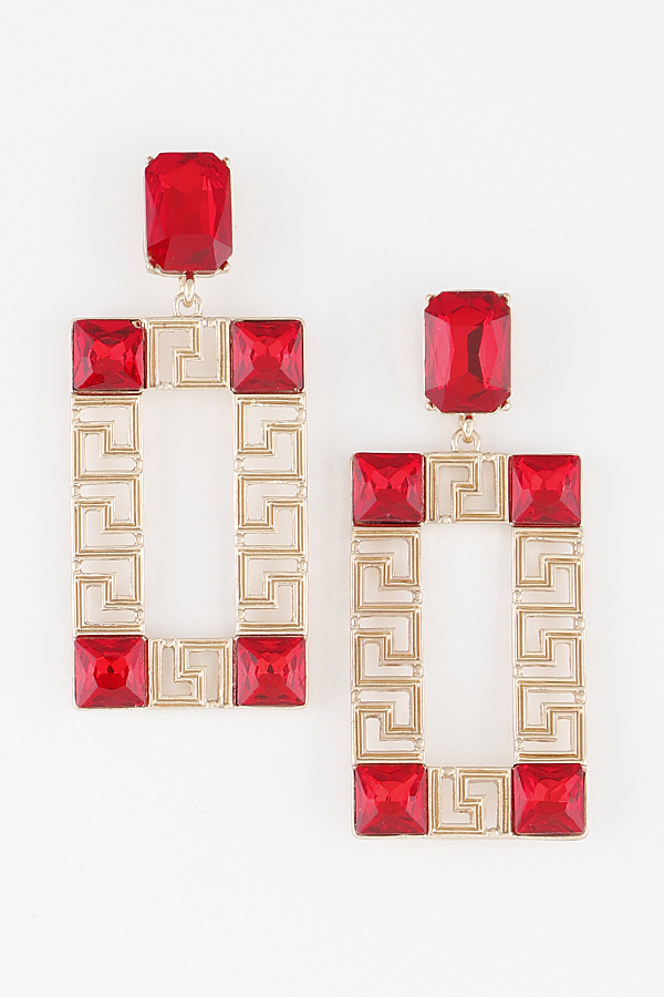 - * Crystal Greek Key Drop Earrings