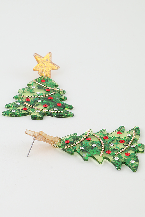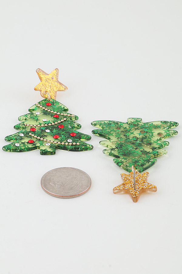 - * Glitter Christmas Tree Holiday Earrings from H&D Accessories are festive and fun. These earrings feature a Christmas tree design adorned with glitter, red baubles, and golden stars on top. They are perfect for adding a touch of holiday cheer to any outfit during the Christmas season.