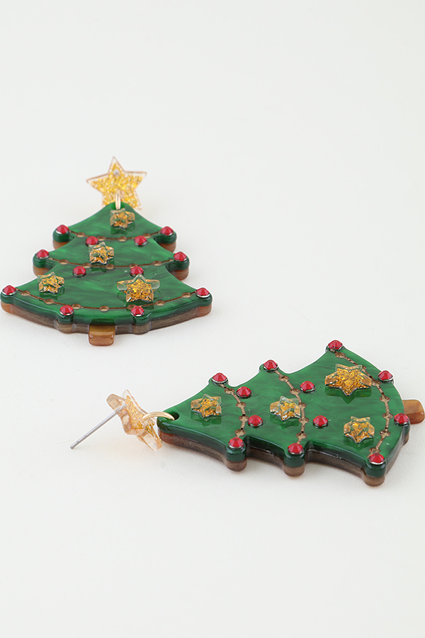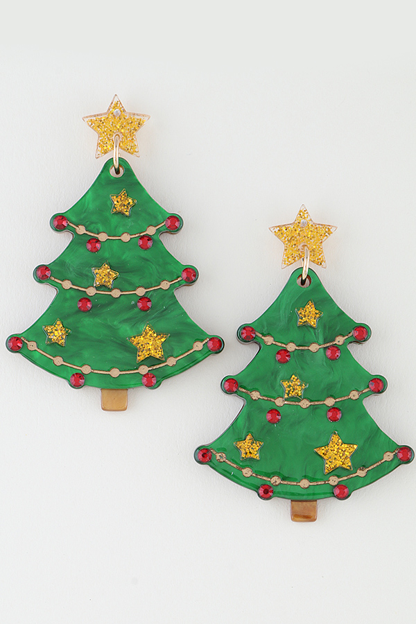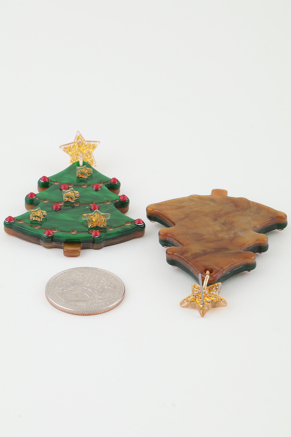 - * Two Toned Christmas Tree Drop Earrings