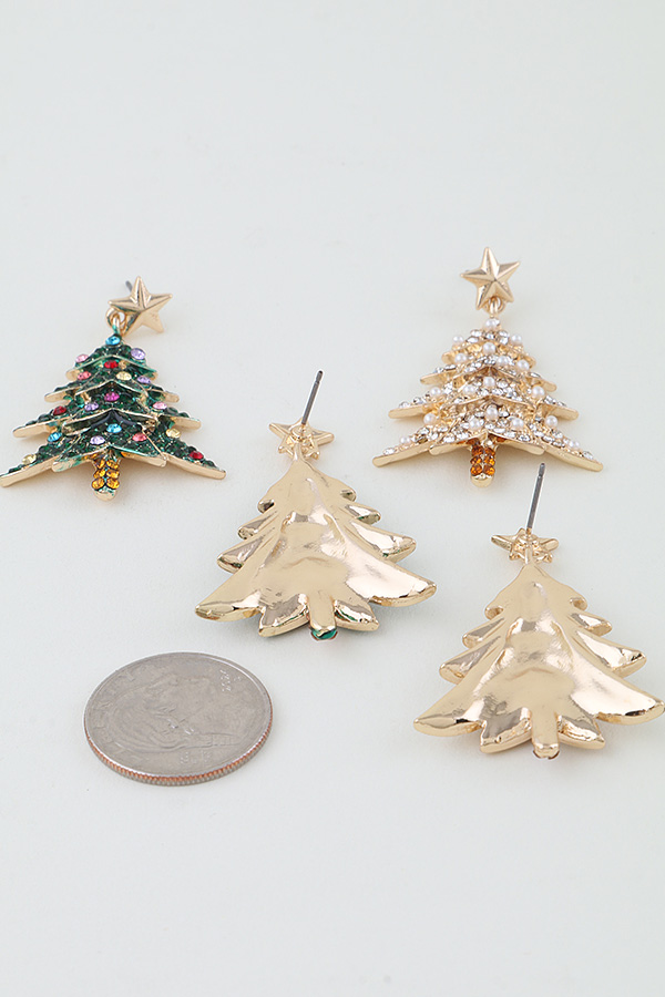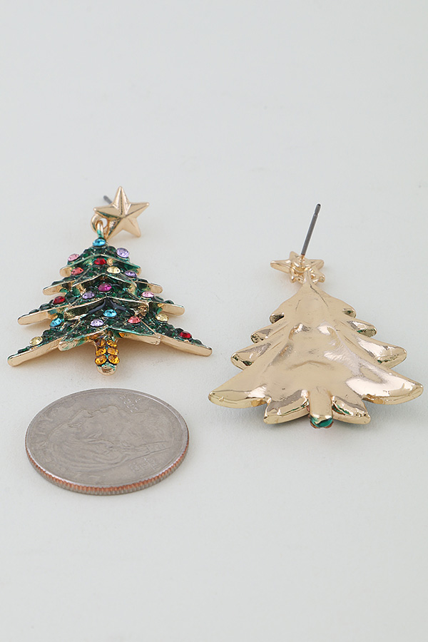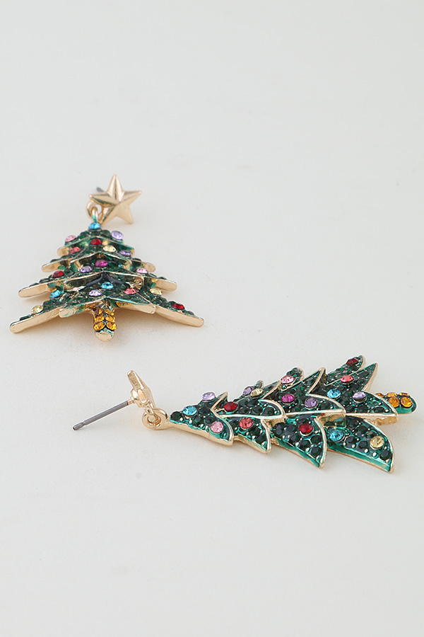- * These are Bedazzled Christmas Tree Stud Earrings from H&D Accessories. They showcase a stunning design with a Christmas tree motif covered in sparkling bedazzlements, giving off a glamorous and festive holiday vibe. You can wear them when attending a Christmas Eve dinner party, as they will add a touch of dazzling charm and holiday spirit to your look, complementing your outfit and making you stand out in the elegant and joyful atmosphere of the party.