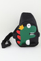 - * This KIDS King Dinosaur Shoulder Bag from H&D Accessories is a trendy and playful item. The bag is primarily black, featuring a vivid green dinosaur adorned with red spines and a yellow crown, making it look like a king. Its big white - eyed, toothy grin adds to the charm, creating a cute and eye - catching design. It comes with a black adjustable strap for easy carrying.