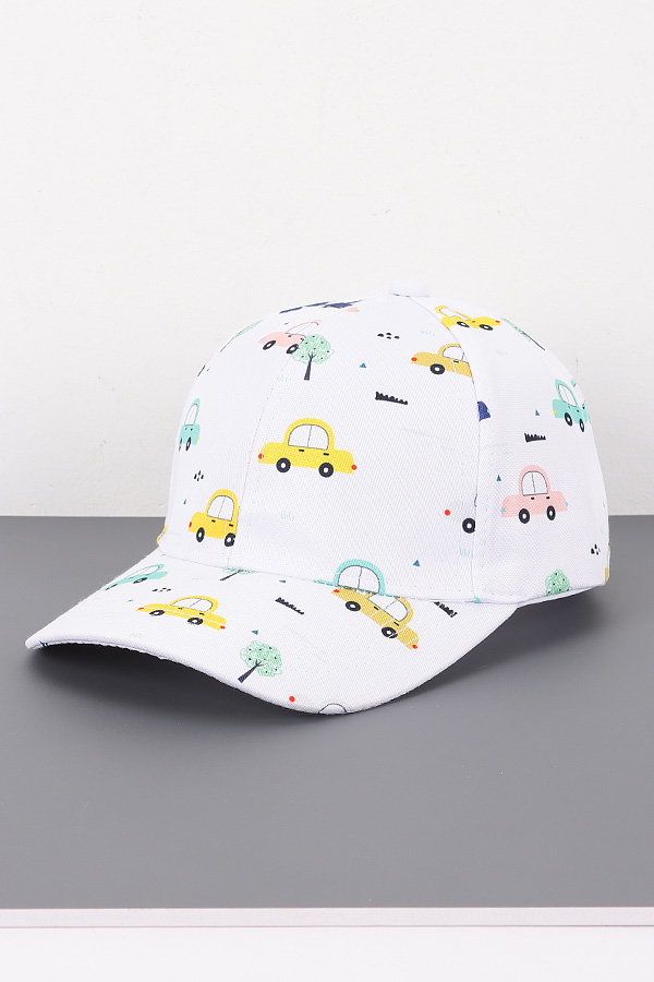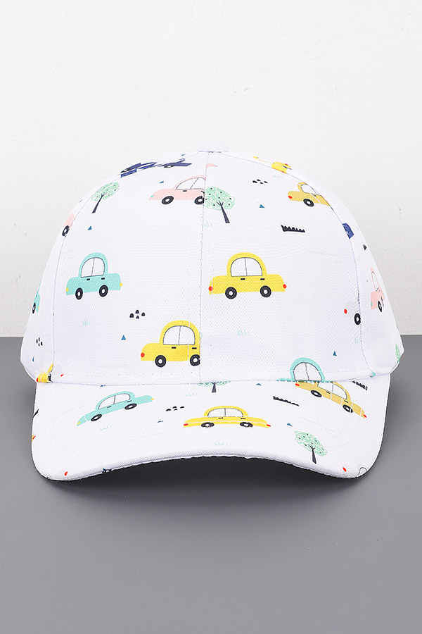 • * This Kids Hat from H&D Accessories features a design with car prints and small tree elements. It has a lively and playful appearance, giving off a fun and charming vibe.Ideal for kids to wear during everyday activities like going to school, playing in the neighborhood, or running simple errands, adding a touch of fun to their look.