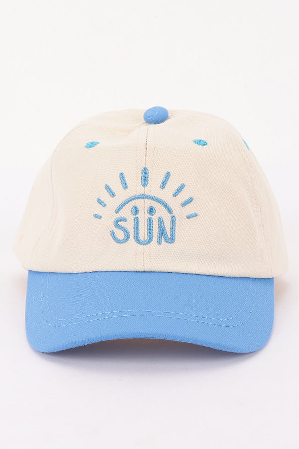 - * This is a Kids Hat from H&D Accessories. It features a cute embroidered design with the word "SUN" and a smiling sun motif on the front. The hat has a classic baseball cap style with a rounded crown and a curved brim. It's perfect for kids to wear on sunny days when they're playing outdoors in the park, going for a family picnic, or just running around the neighborhood, providing both shade and a cheerful touch to their outfits.