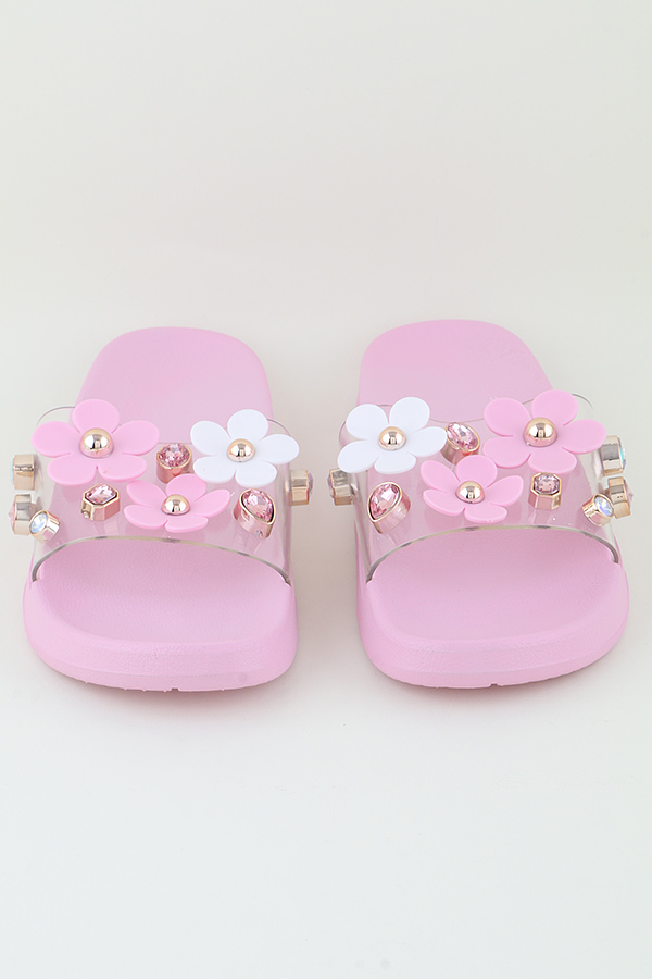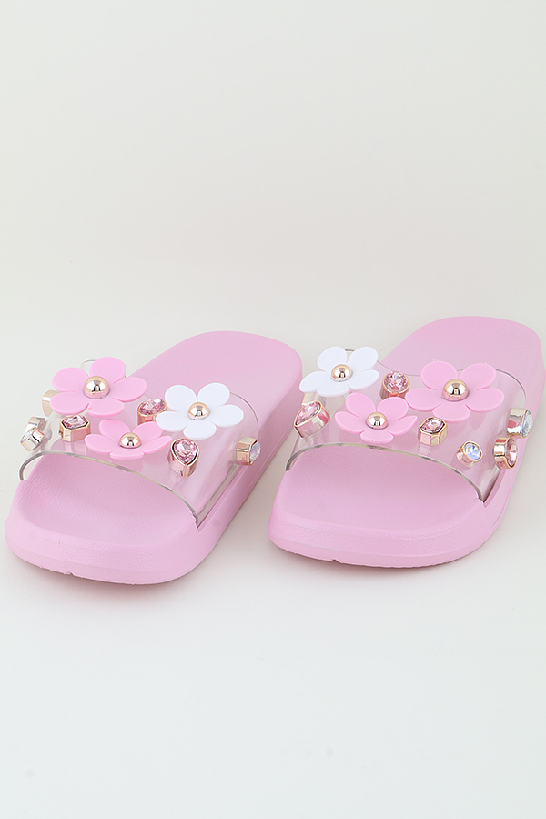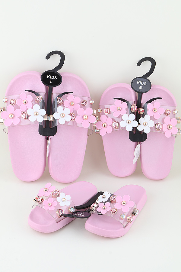 - * KIDS Pink Jeweled Flower Charm Slippers