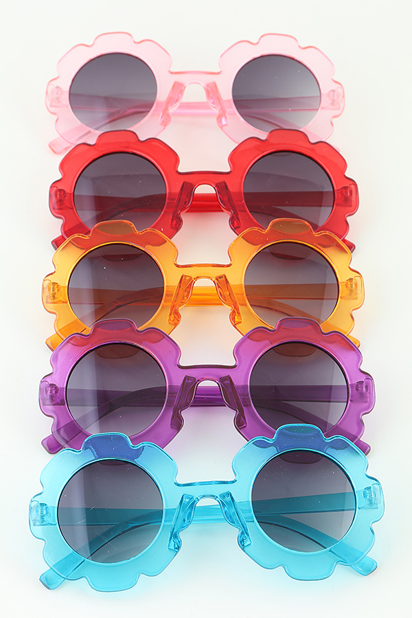 - * KIDS Bright Flower Frame Sunglasses from H&D Accessories feature an adorable flower - shaped frame design. These sunglasses are specially crafted for kids, with a lightweight and durable structure that ensures comfort during wear. The charming flower frame adds a playful touch, making them a lovely accessory for children.