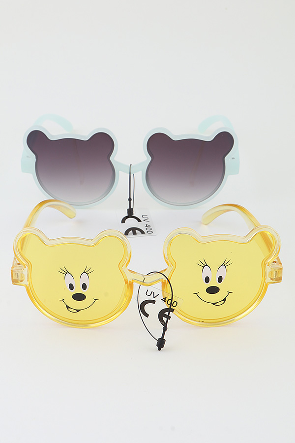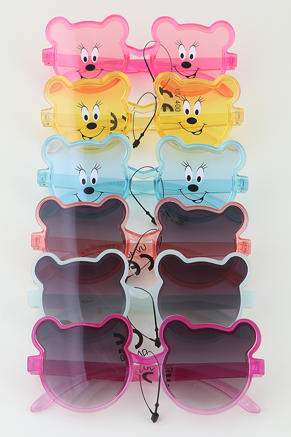 - * These are KIDS Happy Bear Sunglasses from H&D Accessories. They feature a cute bear - shaped design with a smiling face on the frames. Each pair has tags indicating "UV 400" protection, ensuring safety for kids' eyes. Perfect for kids during outdoor activities like family outings to the zoo or park, adding a playful and adorable touch. Ideal for birthday parties, beach vacations, or casual playdates, letting children sport a fun, animal - themed style while shielding their eyes from the sun.