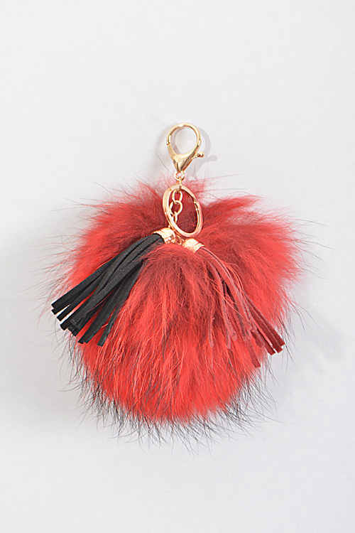 - * Faux Fur Key Chain with Tassel Charm Detail