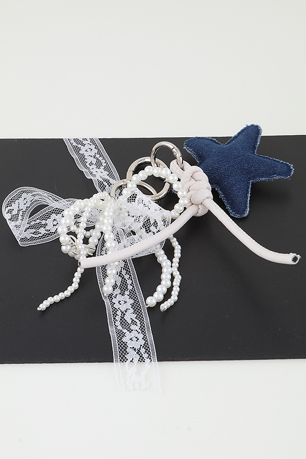 - * This is a Lace Ribbon Bag Charm from H&D Accessories. It features a star - shaped fabric pendant, delicate lace ribbons, strings of pearl - like beads, and metal rings. These elements combine to create an elegant and charming accessory for bags.