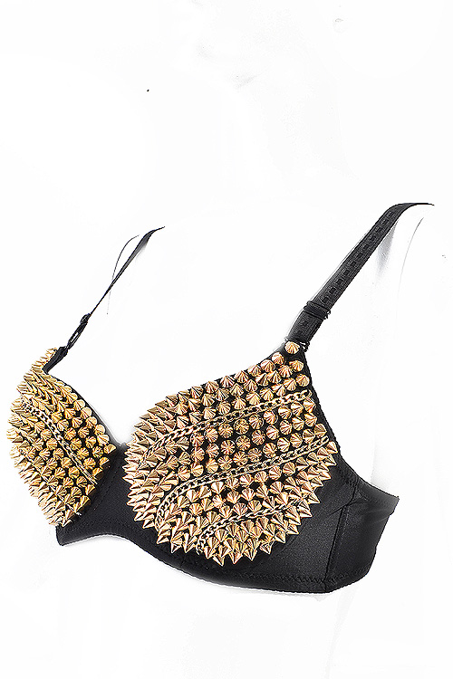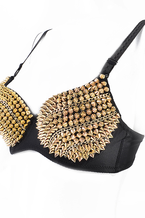 • * Metallic Chains n Spike Studded Fashion Bra * Padded * Underwire * Adjustable straps * Size: One Size Fits Most