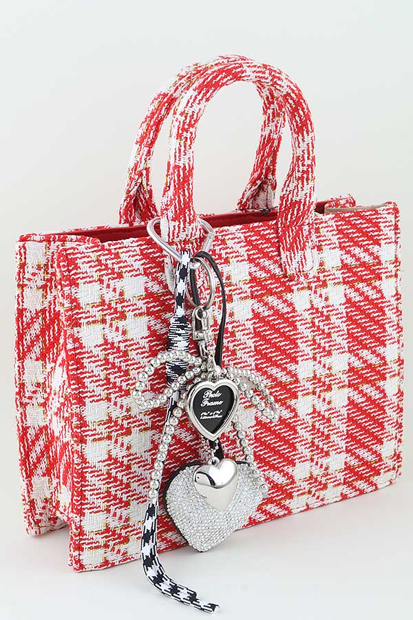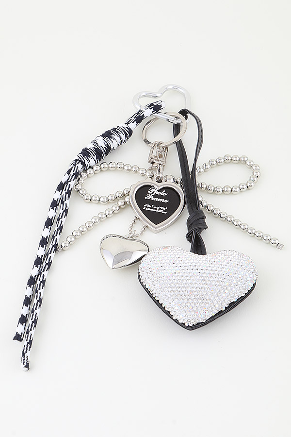 - * This Vintage Heart Ribbon Bag Charm from H&D Accessories is a charming and nostalgic accessory. It features a collection of heart - shaped elements, each with its own unique design. One heart is adorned with sparkling rhinestones, exuding glamour, while another has a sleek, metallic finish. A heart - shaped pendant with engraved text adds a touch of sentimentality. The charm is complemented by a beaded chain and a textured ribbon, enhancing its vintage - inspired aesthetic.