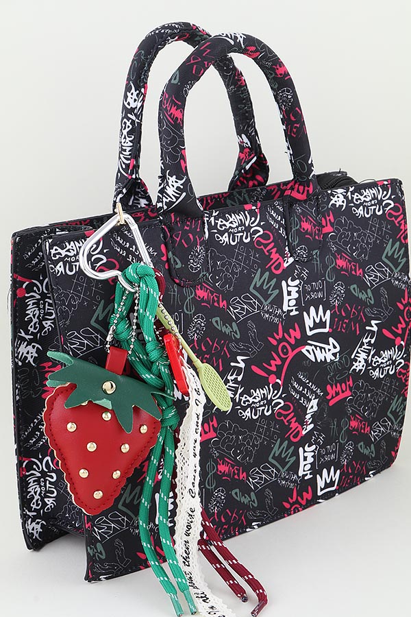 - * The Multi Strawberry Tassel Bag Charm is a delightful accessory from H&D Accessories. It features a strawberry - shaped charm with gold studs, accompanied by multiple tassels in different textures, including a lace ribbon with a sweet message. This bag charm is perfect for adding a touch of charm and playfulness to your bags.