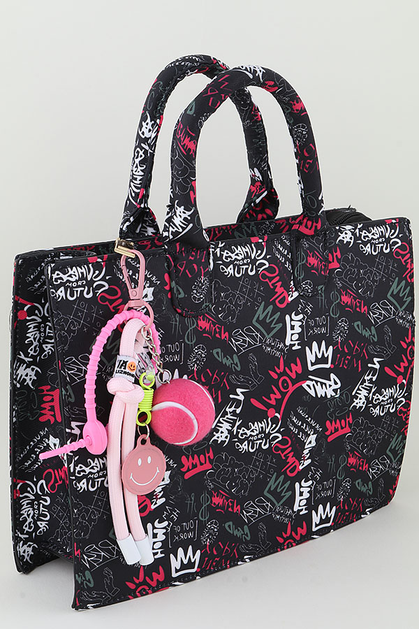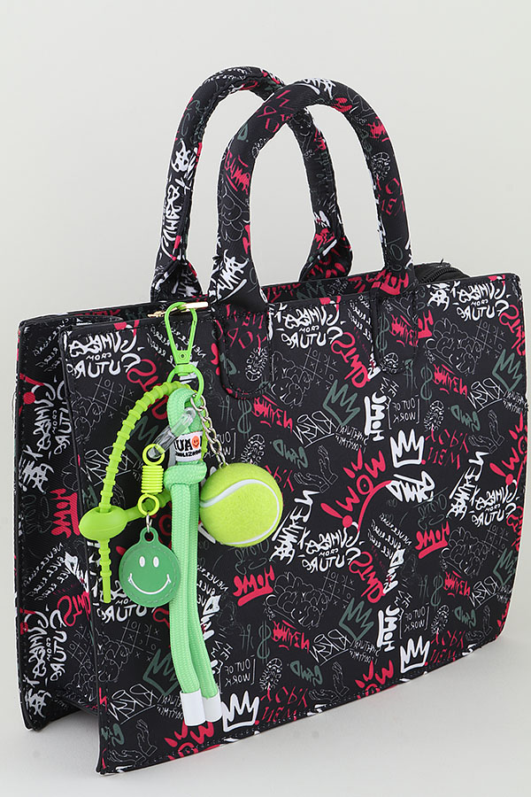 - * This is a Tennis Fun Bag Charm from H&D Accessories. It consists of a carabiner clip, a tennis ball, a smiley - faced tag, and several flexible, cord - like elements. The charm combines sporty and playful components, creating a lively and fun accessory.