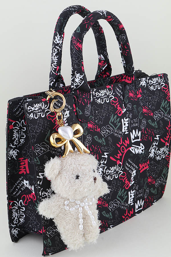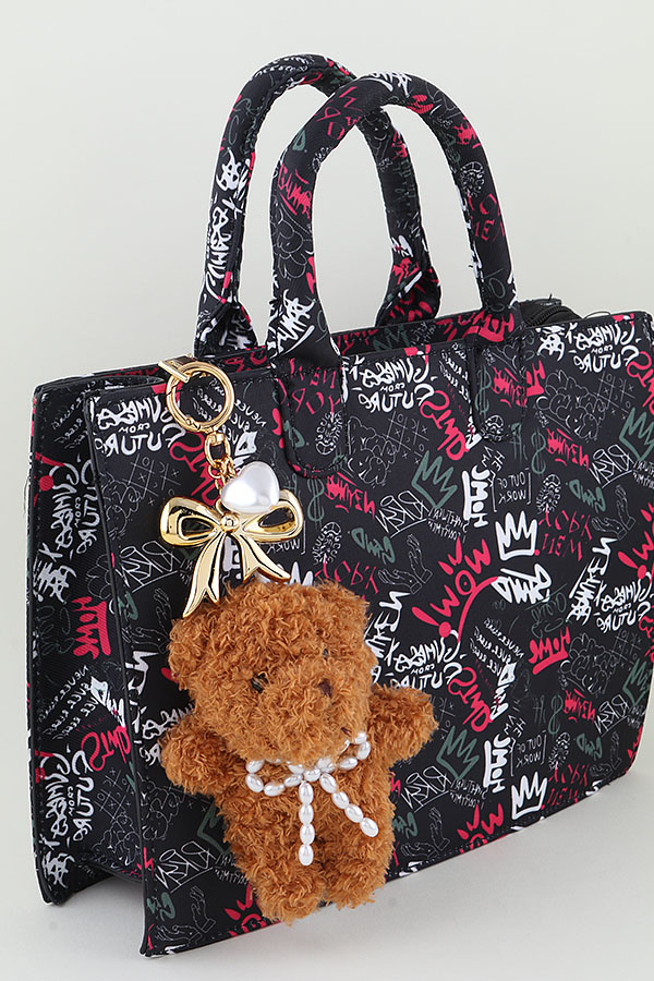 - * The Cute Ribbon Bear Bag Charm is an adorable accessory from H&D Accessories. It features a plush bear with a ribbon around its neck, accompanied by a charming bow and pearl accents. This bag charm is perfect for adding a touch of cuteness to your bags.