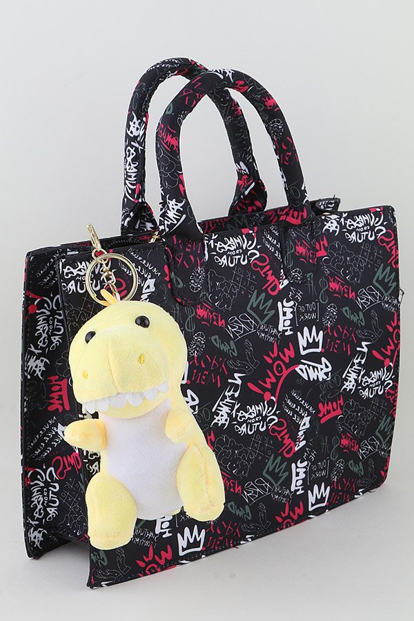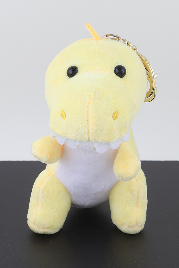 - * This is the Happy Dinosaur Bag Charm from H&D Accessories. It is crafted in the shape of a cheerful dinosaur, made with soft, plush material. The dinosaur has a friendly expression, with a small black eye and a wide - mouthed smile. Its body is adorned with small, rounded spikes along the back, and it comes with a key - ring attachment, making it easy to attach to bags or keys.