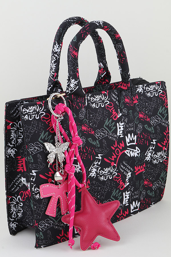 - * This is a Star Butterfly Tassel Bag Charm from H&D Accessories. It has a star - shaped pendant, a bow - shaped pendant, a butterfly - shaped metal ornament, and a heart - shaped metal piece. All these elements are connected by pink cords with a key ring, creating a cute and stylish accessory.