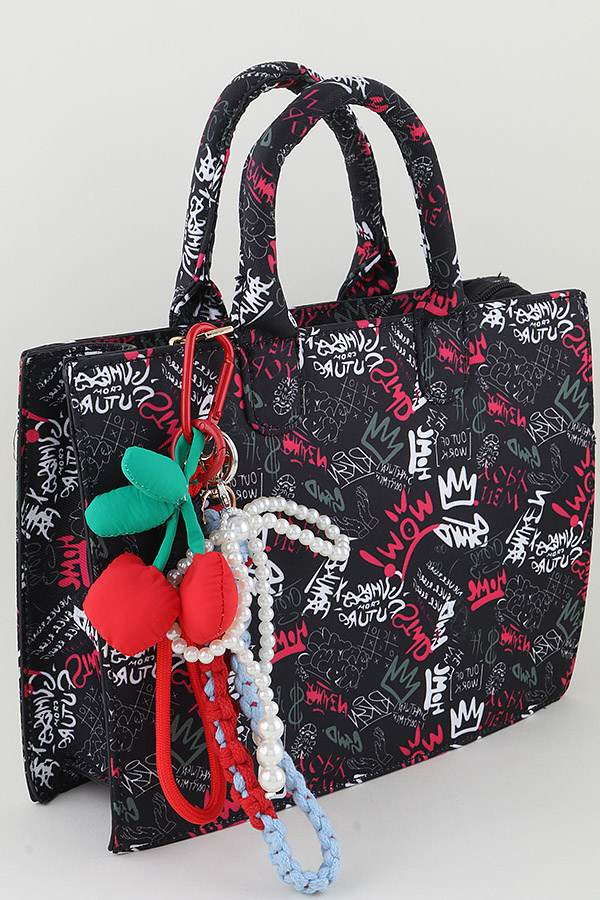 - * This is a Cherry Ribbon Tassel Bag Charm from H&D Accessories. It includes elements like cherry - shaped decorations, ribbons, pearl chains, and crocheted tassels, all attached to a carabiner. The charm combines various textures and designs for a unique look.