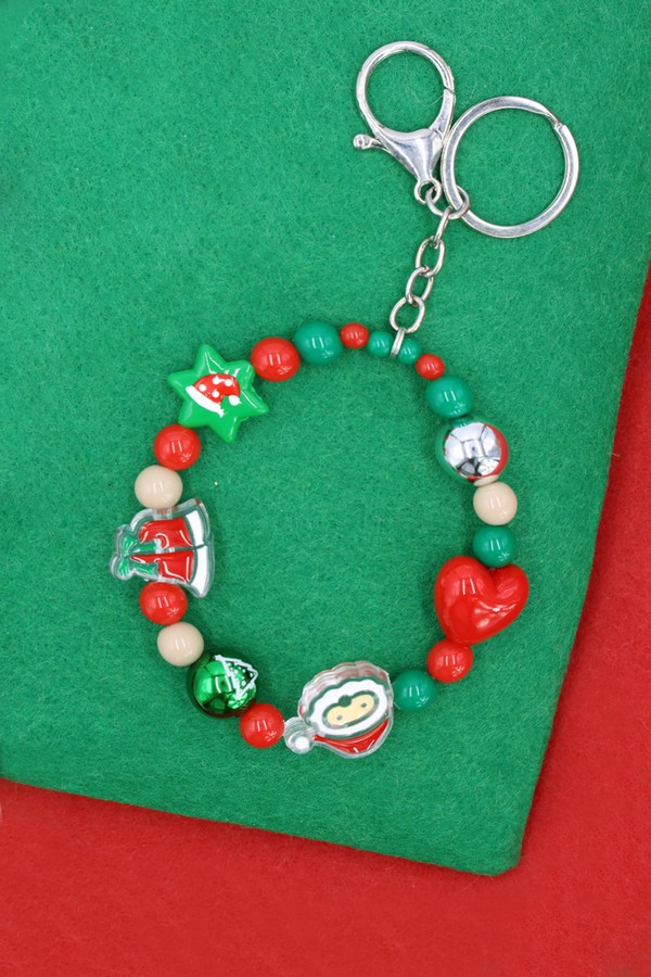 - * Get into the holiday spirit with our festive Christmas Key Chain Bracelet from H&D accessories! This red and green accessory is the perfect way to add a touch of Christmas cheer to your outfit.