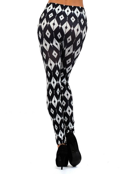 - * Diamond Geometic Shapes Printed Leggings * Material: 95% Polyester, 5% Spandex * Printed sublimation leggings * Size: ONE SIZE * Pack of 6 The Diamond is a very nice and hip seamless fashion legging. The Diamond is pure sheerness and smooth in design.