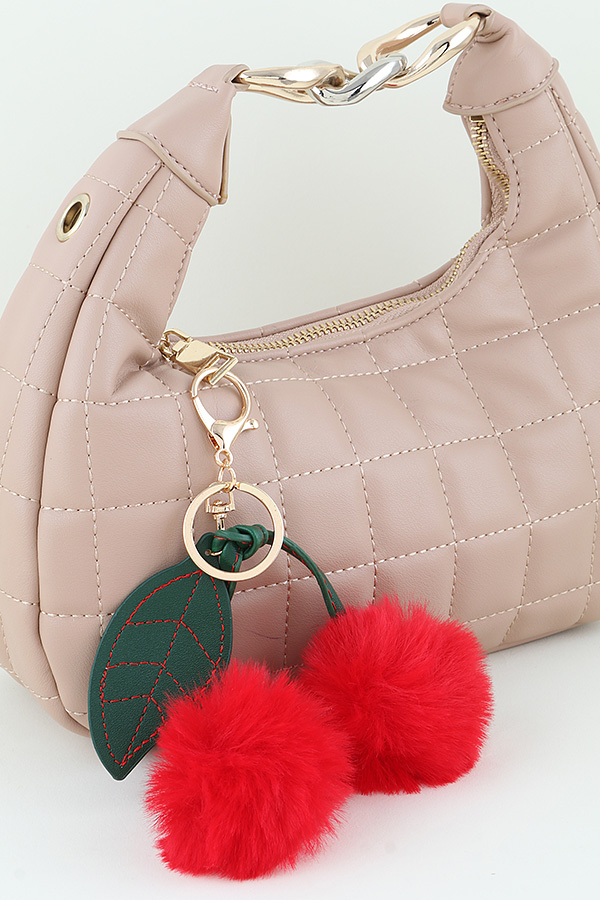 • * The Cute Cherry Bag Charm from H&D Accessories is an adorable accessory. It features a charming cherry design with fluffy pom - poms, adding a touch of cuteness to any bag. The charm is attached to a keyring, making it practical for hanging on bags, purses, or even as a keychain. This bag charm is perfect for adding a delightful and stylish touch to your daily accessories.