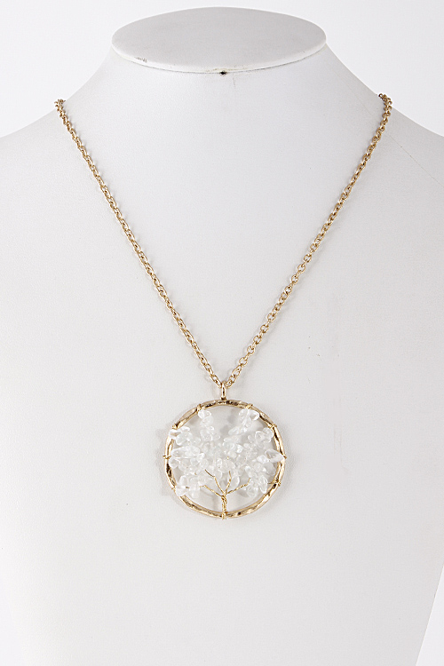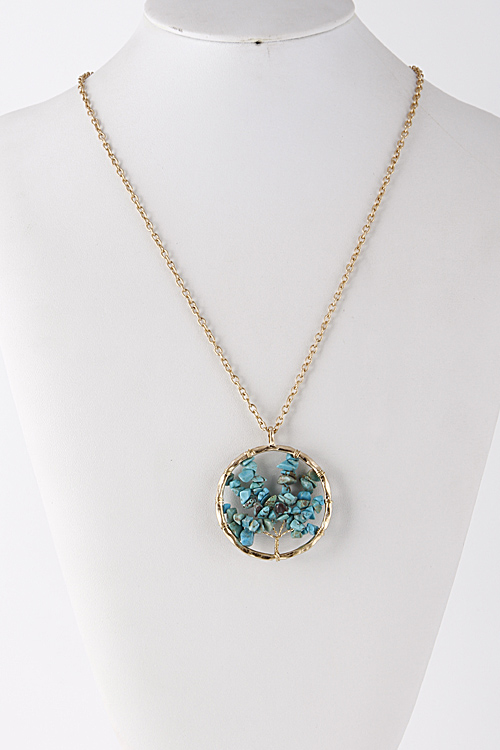 - * Stone Bead Branched Tree Pendant Necklace 5ECA1 * 36 x 2" approx.
