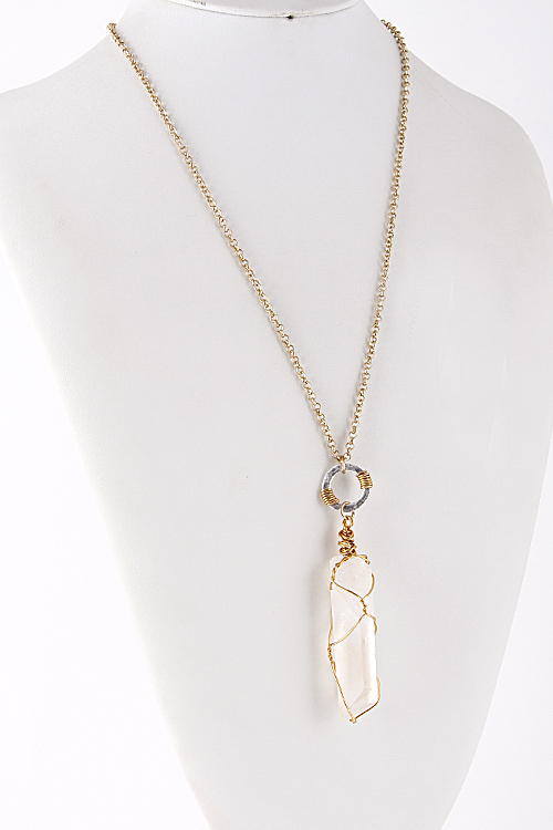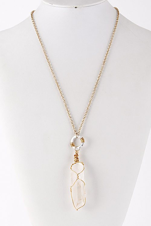 • * Clear Crystallized Stone Wired Long Necklace 5EBJ7 * 34 x 3" approx.