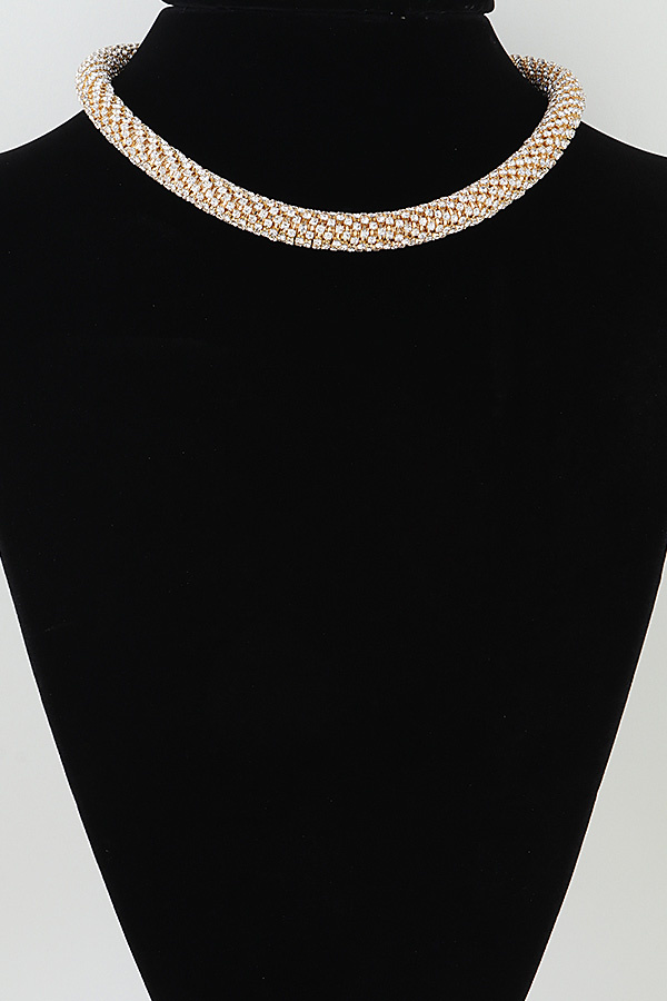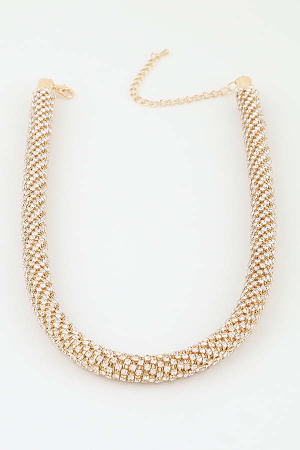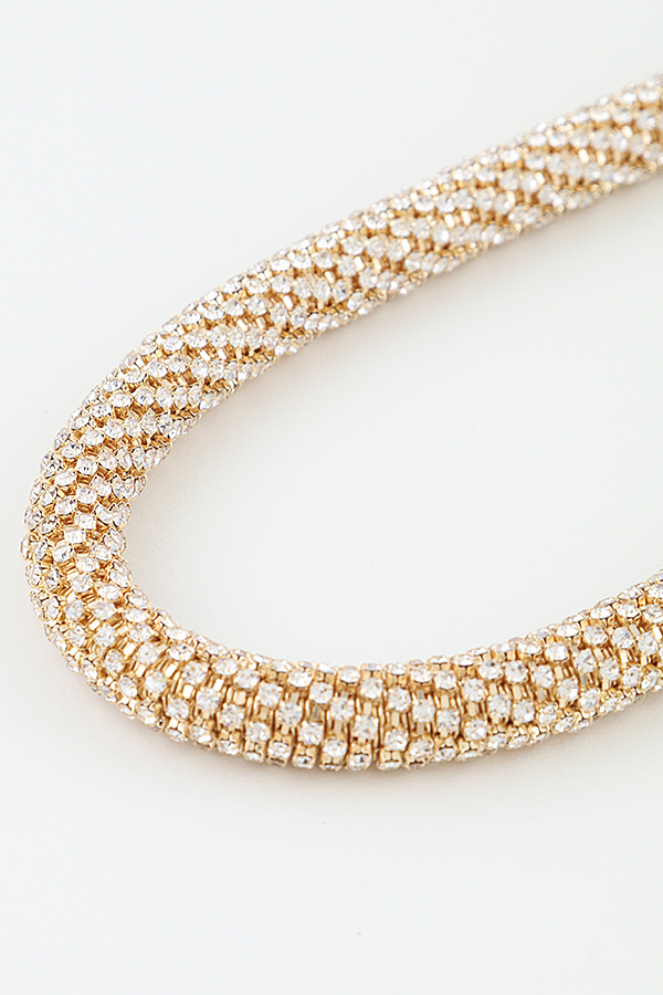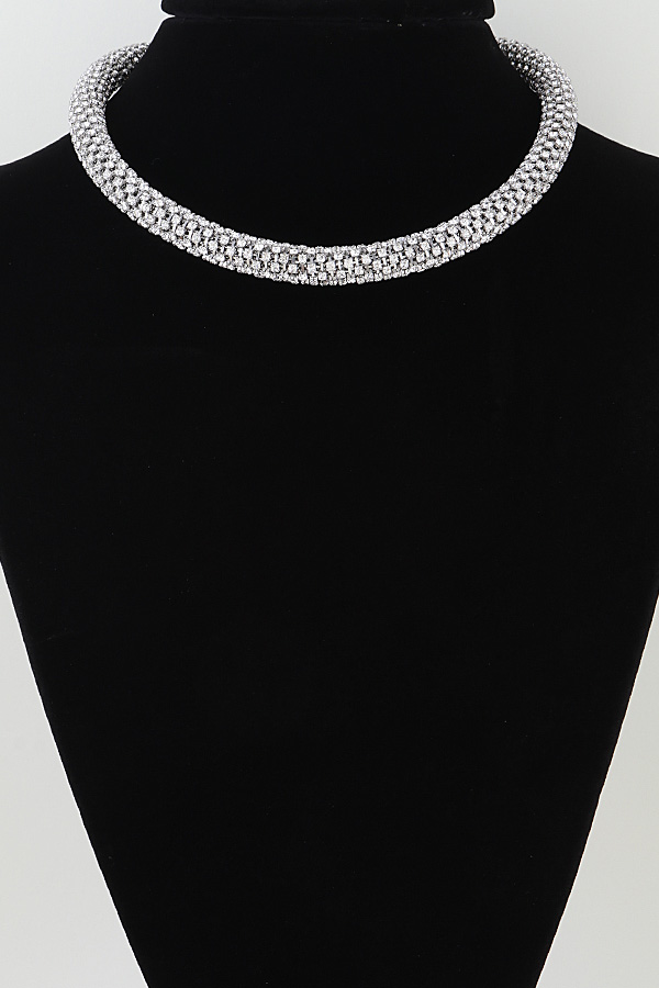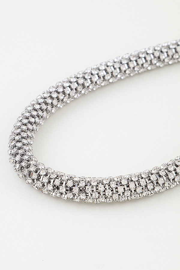 • * This choker necklace from H&D Accessories features a bold, modern design with a dense, multi-row bejeweled construction. The tightly packed, sparkling stones create a continuous, luminous band that sits snugly around the neck. The polished, reflective finish enhances the necklace's glamorous appeal, delivering a striking, eye-catching statement.