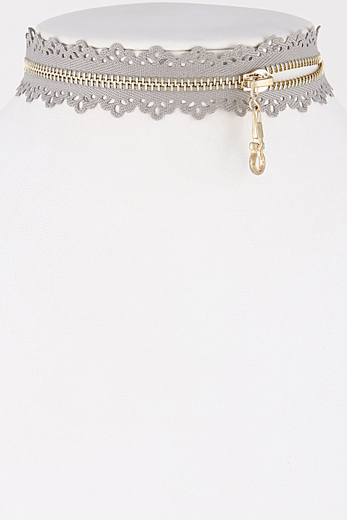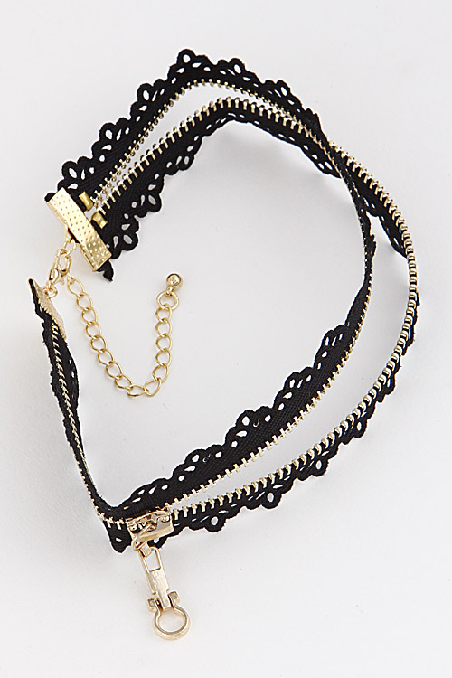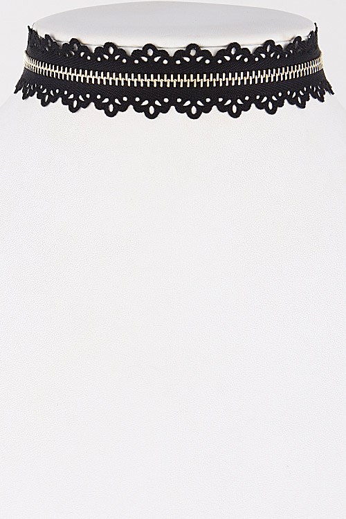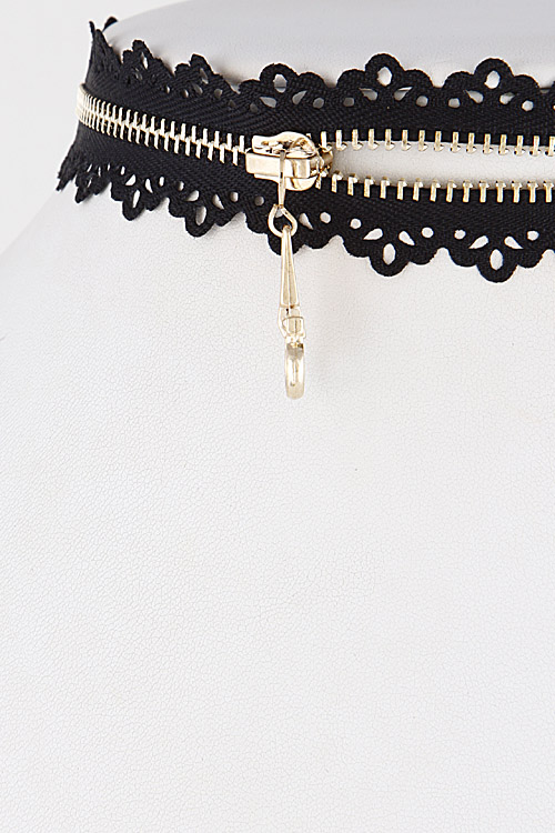 • * Zipper Inspired Choker Necklace with Intricate Pattern 6LBF6 * 1 x 12" approx.