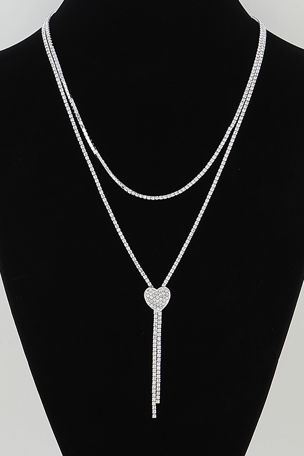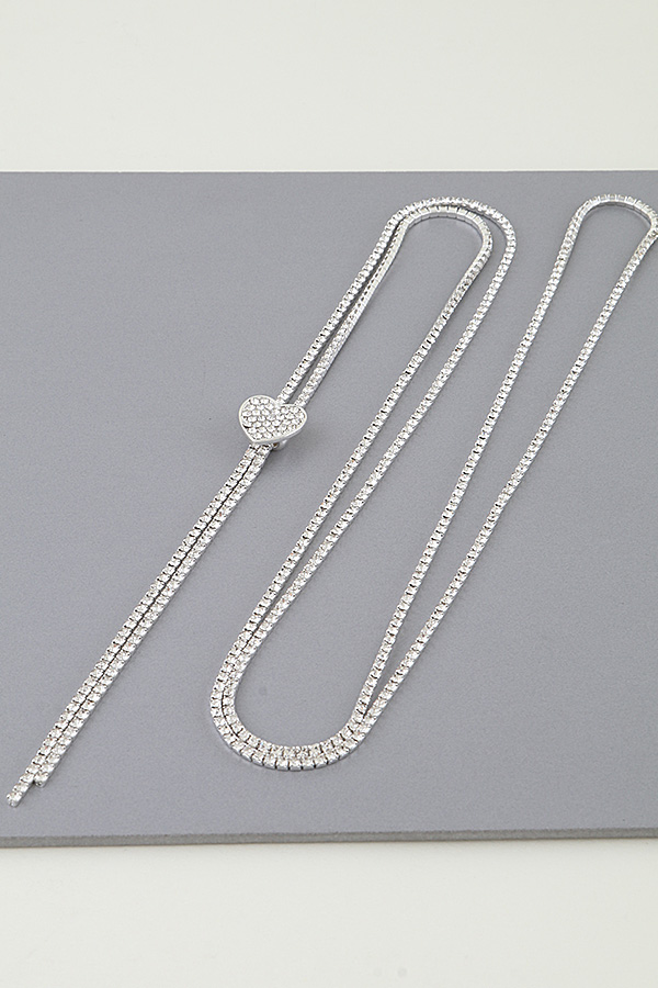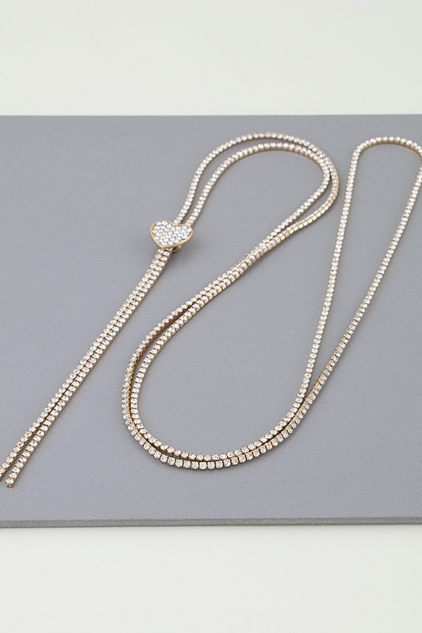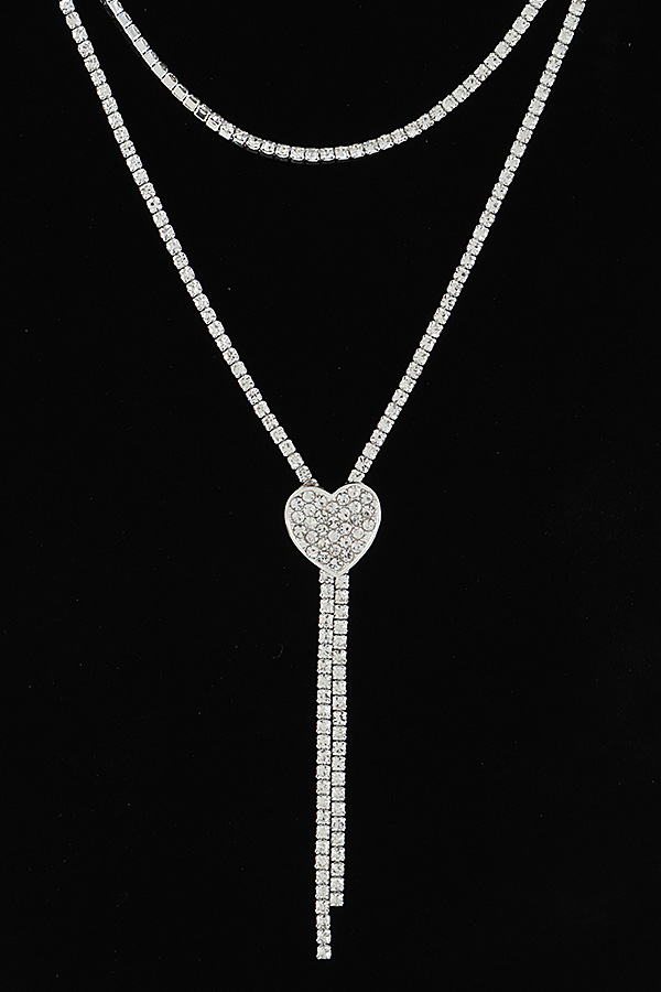 - * This Bejeweled Adjustable Heart Toggle Necklace from H&D Accessories features a layered, multi-strand design crafted with crystal-encrusted tennis chains that catch the light with subtle brilliance. The lower strand forms a Y-shape, anchored by a heart-shaped pendant paved with shimmering crystals, and finished with a slender, dangling crystal drop for added movement. The adjustable toggle closure ensures a customized fit, while the combination of delicate layers and romantic detailing creates a piece that balances sophisticated sparkle with soft, feminine charm.