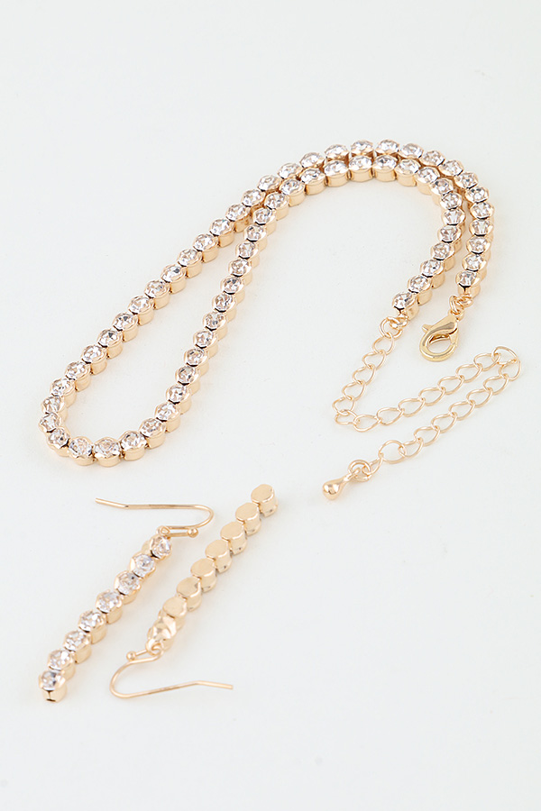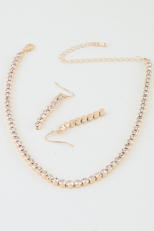 - * Bejeweled Rhinestone Choker Necklace N Earrings Set