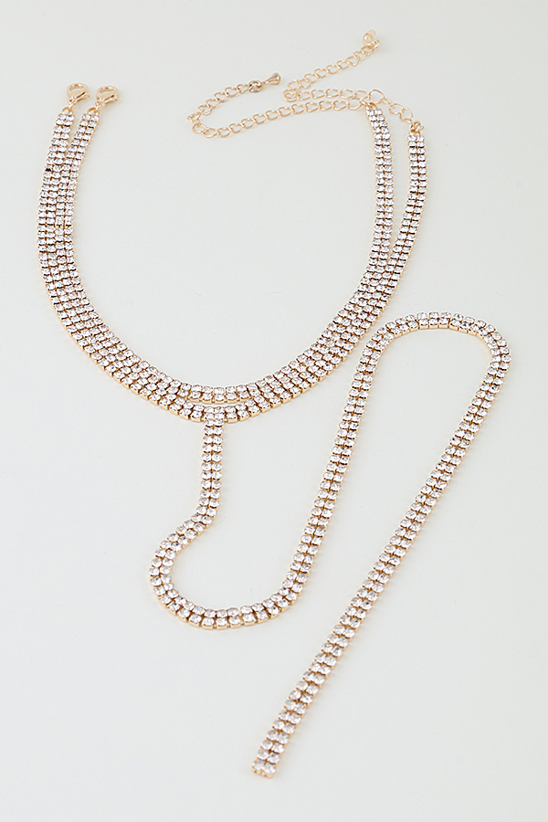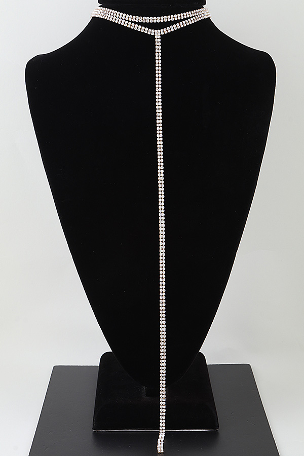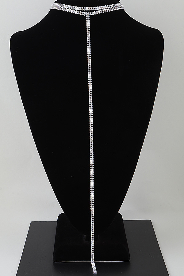 • * This is the Double Rhinestone Drop Choker Necklace, a glamorous accessory from H&D Accessories. It features a double-strand choker design at the neck that extends into a long, rhinestone-embellished drop down the back, finished with a secure closure for comfortable wear. Perfect for adding a showstopping touch to formal looks—whether you’re dressing up for a wedding, a gala, or an evening event in a backless dress—this necklace serves as a striking focal point. Its dramatic yet polished design elevates elegant ensembles, making it a standout choice to enhance special, memorable occasions.