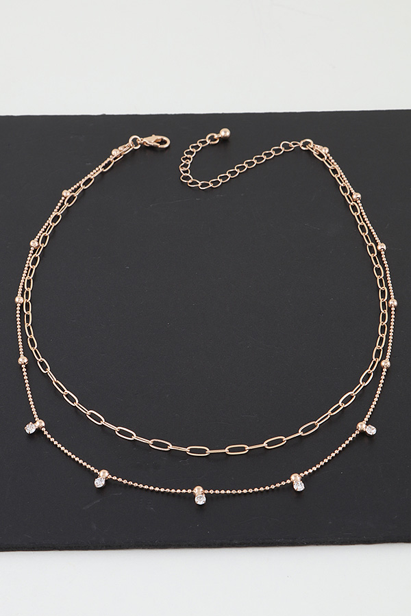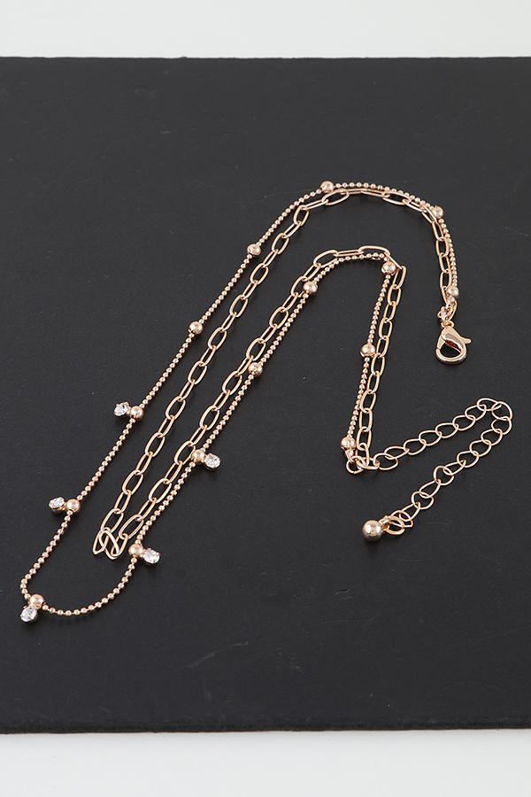 - * This is the Multi Rhinestone Beaded Necklace from H&D Accessories. It features a layered design, combining a chunky chain with a finer beaded strand. Small rhinestones are delicately interspersed along the beaded chain, adding a touch of sparkle and sophistication. The craftsmanship ensures a harmonious blend of textures and elements, creating an eye - catching accessory.