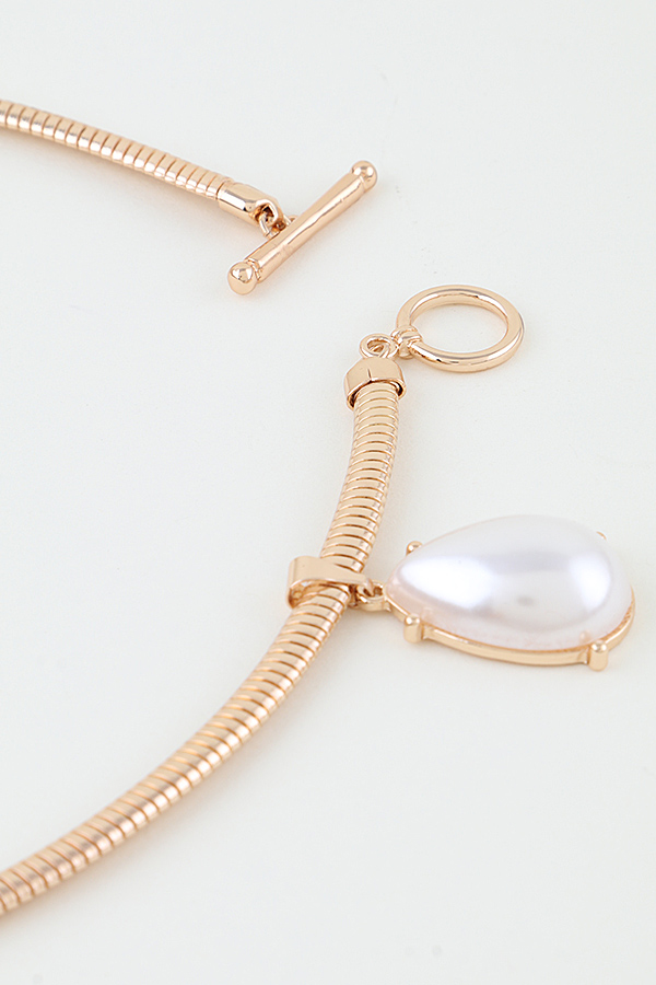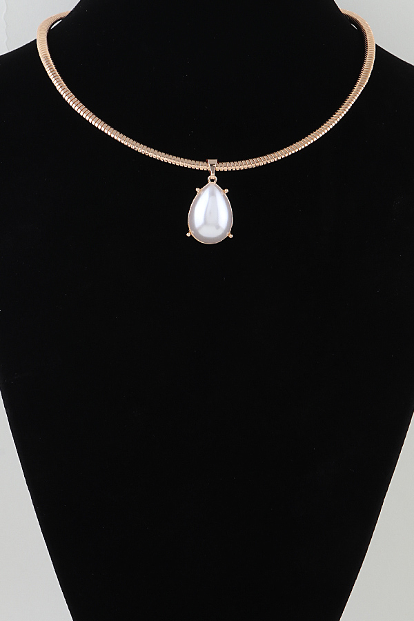 • * This is the Polished Teardrop Stone Chain Necklace from H&D Accessories. It features a sleek, flexible snake chain styled as a choker, paired with a teardrop-shaped stone pendant. The pendant is secured by small prongs, highlighting its smooth, luminous finish. The close-fitting chain and centered pendant create a refined, focused silhouette, blending the subtle texture of the snake chain with the elegant shape of the teardrop accent.