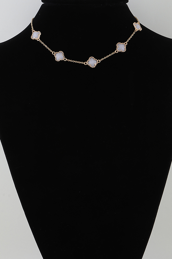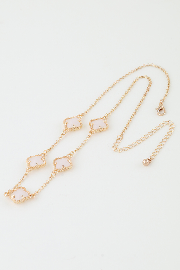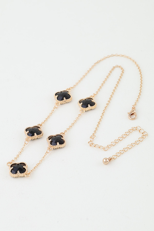 - * This Stone Clover Charms Chain Necklace from H&D Accessories features multiple stone-embedded clover charms linked by a delicate chain. The intricate clover design and fine craftsmanship create a delicate and elegant look, making it a charming piece that adds a touch of grace to any jewelry collection.