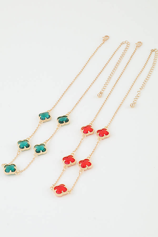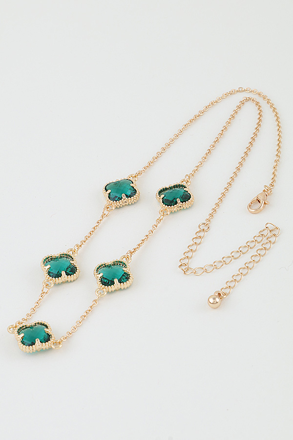 - * Crystal Clover Charm Chain Necklace