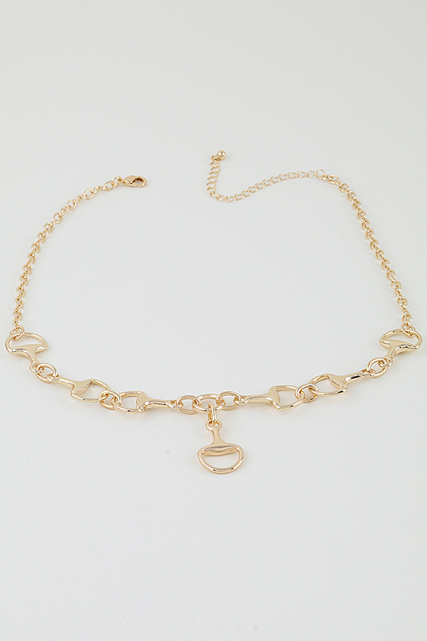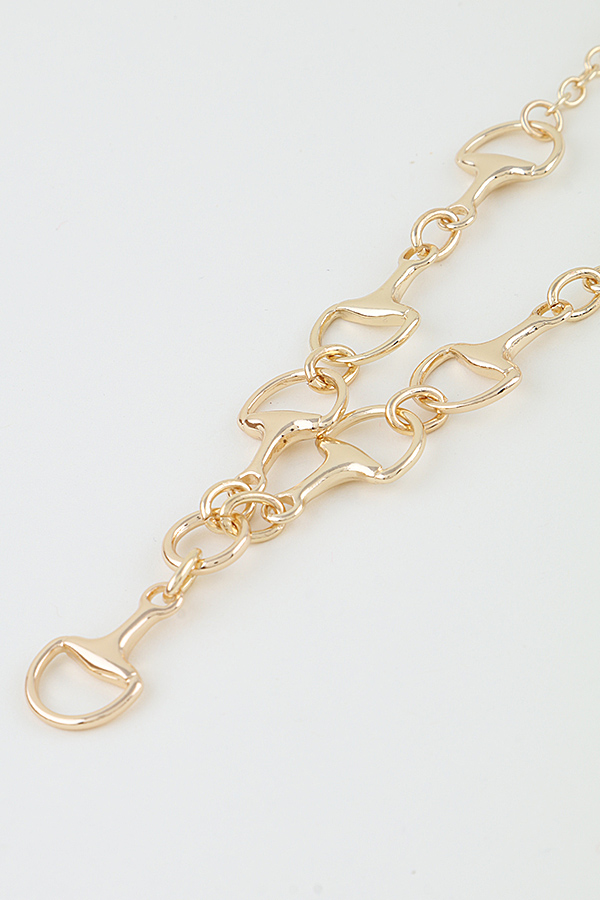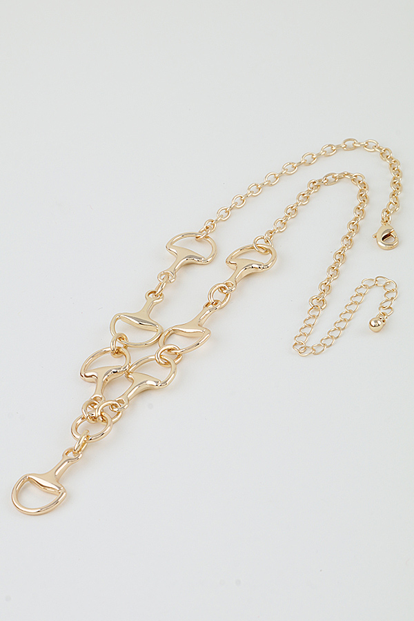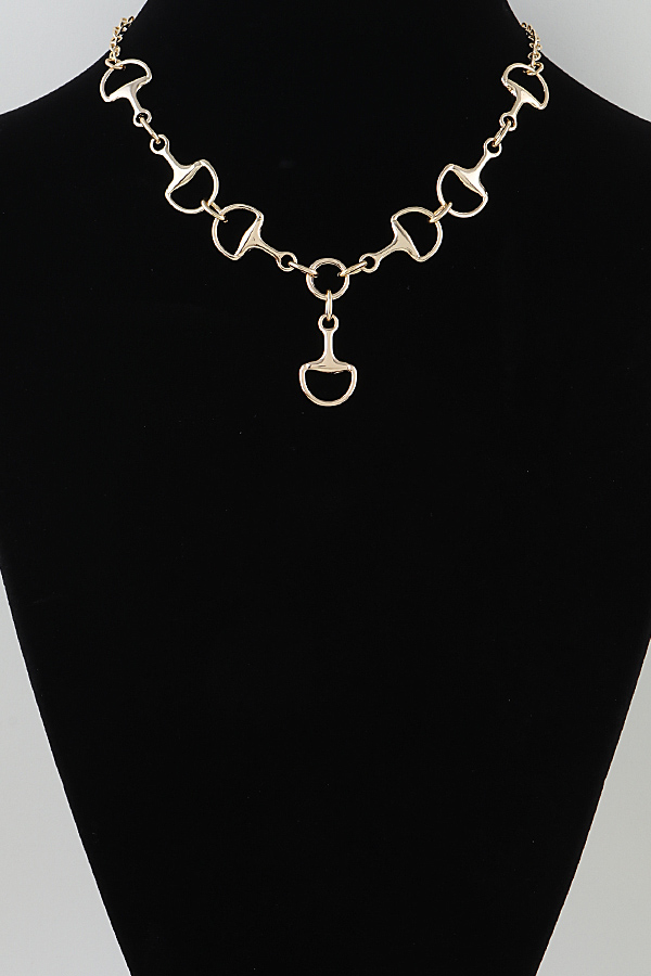 - * This necklace from H&D Accessories features a bold chain design, constructed from repeating toggle-shaped links. A single toggle pendant hangs from the center, creating a symmetrical, cascading focal point. The polished, reflective metal finish enhances the necklace's sleek, equestrian-inspired silhouette, making it a versatile and eye-catching statement piece.